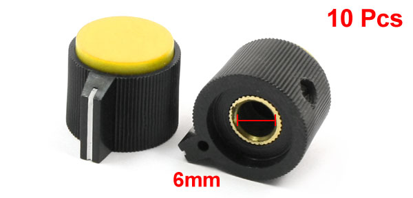 10pcs Adjustable Turn 6mm Shaft Dia Potentiometer Rotary Knobs Yellow