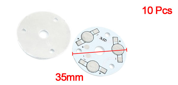 Product Name LED Aluminum PCB Circuit Board Fit for 3 x 1W/3W/5W LEDs(in series) Diameter 35mm/ 1.4" Thickness 1.5mm/0.06" Total Weight 33g Materials Aluminum Main Color White, Silver Tone Package Content 10 x LED Aluminum PCB Circuit Board - Reviews