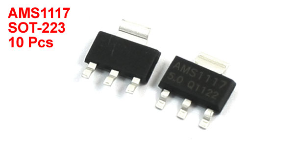 Product Name Voltage Regulator IC Model AMS1117 Voltage 5V Mounting Type PCB SMD SMT Type SOT-223 Each Size(Approx) 6.5 x 3.5 x 1.5mm /0.25" x 0.13" x 0.06" (L*W*T) Color Black Net Weight 2g Package Content 10 Pcs x Voltage Regulator IC - Reviews