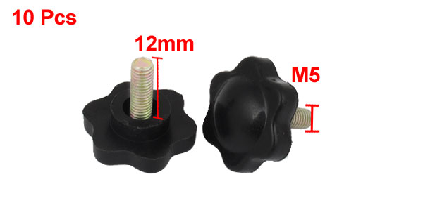 10pcs Black Plastic 25mm Head Diameter Star Clamping Knobs M5 x 12mm
