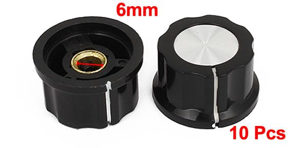 Product Name Potentiometer Knob Cover Hole Diameter 6mm Overall Size 23 x 16 mm / 0.9" x 0.6" (D*H) Material Plastic & Metal Color Black, Silver Tone Net Weight 60g Package Content 10 x Potentiometer Knob Covers - Reviews