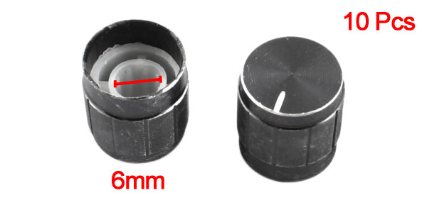 Product Name Potentiometer Knob Material Plastic, Aluminum Fit for Knurled Shaft Color Black Total Size 14 x 15mm / 0.55" x 0.59" (D*H) Inner Hole Diameter(Fit Shaft Dia) 6mm / 0.24" Net Weight 22g Package Content 10 x Potentiometer Knobs - Reviews