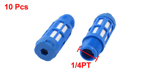 10Pcs Blue Plassitc 1/4PT Thread Pneumatic Exhaust Noise Absorb Silencer Muffler