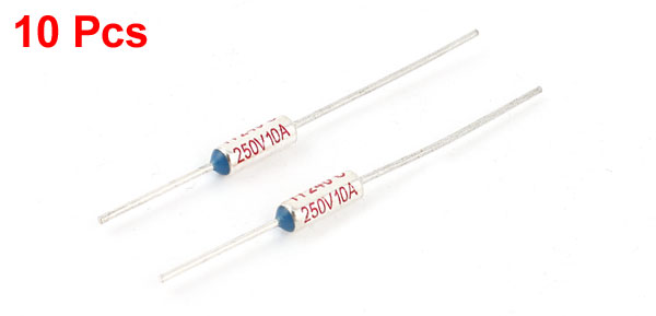 Product Name Thermal Fuse Rated Functioning Temperature 240C Rated AC 250V 10A Pin Diameter 1mm / 0.039" Body Size 13 x 4mm/ 0.5" x 0.16" (L*D) Total Length 65mm/ 2.5" Material Metal Color Silver Tone Weight 11g Package 10 x Thermal Fuse - Reviews