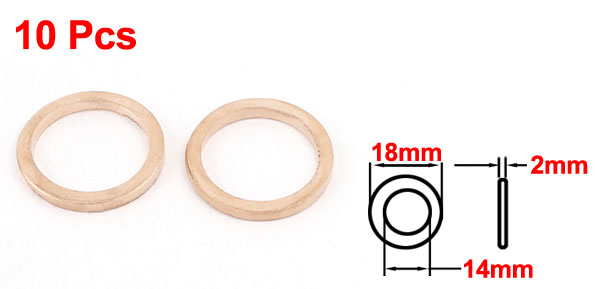 10Pcs Copper Crush Washer Flat Ring Seal Gasket Fitting 14mmx18mmx2mm