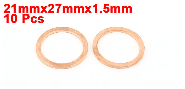 Product Name Copper Washer Total Size 21 x 27 x 1.5mm/0.83" x 1.1" x 0.06"(Inner Dia*OD*T) Material Copper Color Copper Tone Net Weight 27g Package Content 10 x Copper Washers - Reviews