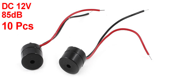 Product Name Active Electronic Alarm Buzzer Rated Voltage DC 12V Resonance Frequency 2.8 ± 0.5KHz Sound Pressure >= 85dB/10cm/5VDC Current Consumption(Max.) <=30mA Operating Temperature Range -20-+70C Body Size 12 x 9mm / 0.47" x 0.35" (D*H) Wire Length 5cm/2" External Material Plastic Color Black Weight 19g Package Content 10 x Active Electronic Alarm Buzzer