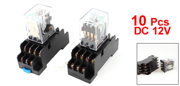 10Pcs DC 12V Coil 4PDT 14Pin Green LED General Purpose Power Relay w Socket Base