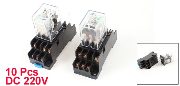 Details10Pcs DC220V Coil 3PDT 11Pin Green LED General Purpose Power Relay w Socket Base  Product Name Power Relay w Socket Base Model HH53PL Socket Model DYF11A Coil Voltage DC 220V Light Color Green Type 3PDT(3NO 3NC ) Number of Terminals 11 Mount Rail Type 35mm DIN Rail Fixing Mount Hole Size 4.5 x 4mm/0.18" x 0.16"(L*W) Relay Size (Approx.) 3.5 x 2.7 x 2cm/1.4" x 1.1" x 0.8"(L*W*H) Socket Size 7 x 2.9 x 2.9cm/2.8" x 1.1" x 1.1"(L*W*H) Shell Material Plastic, Electric Parts Main Color Black, Clear Total Weight 774g Package Content 10 x Power Relay w Socket Base