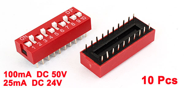 Dimension 27 x 10 x 10mm/1.1" x 0.39" x 0.39" (L*W*H) Material Plastic, Electric Parts Main Color Red, White, Gold Tone Net Weight 20g Package Content 10 x DIP Switches - Reviews