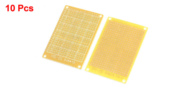 Product Name Universal PCB Board Hole Dia(Approx) 1mm / 0.04" Hole Pitch(Approx) 3mm / 0.12" Size(Approx) 7 x 5cm / 2.8" x 2.0"(L*W) Thickness(Approx) 1mm / 0.04" Color Yellow, Brown, Copper Tone Material Glass Fiber, Copper Net Weight 43g Package Content 10 x Universal PCB Board - Reviews