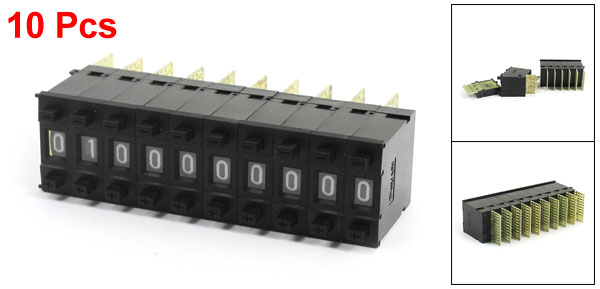 Product Name Pushwheel Switch Number of Unit 1 Digital 0,1,2,3,4,5,6,7,8,9 Code Method Decimal Mounting Hole Dia(Each) 1mm/0.04" Each Size 40 x 22 x 8mm/1.6" x 0.87" x 0.31"(L*W*T) Color Black, Yellow Material Plastic, Electronic Parts Net Weight 33g Package Content 10 x Pushwheel Switch - Reviews