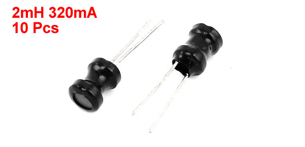 Product Name Inductor Inductance 2mH Rating Current 320mA Tolerance 10% Body Size 6 x 8mm / 0.24" x 0.31"(D*H) Pin Size 0.5 x 15mm/ 0.02" x 0.59"(D*L) Lead Distance 2mm / 0.08" Color Black, Silver Tone Weight 11g Package Content 10Pcs x Inductors - Reviews