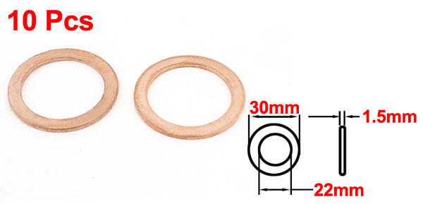 10pcs Flat Ring Copper Washer Gasket 22mmx30mmx1.5mm