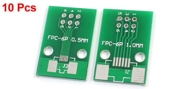 Product Name FPC/FFC-6P PCB Adapter Plate Pin Pitch 0.5mm/0.02", 1mm/0.04" Fixing Hole Dia 3mm/0.12" Fixing Hole Center Distance 11.5mm/ 0.45" Body Size 26 x 17.5 x 1.5mm/1" x 0.7" x 0.06"(L*W*T) Material Electronic Part, FR-4 Main Color Green Total Weight 10g Package Content 10Pcs x FPC/FFC-6P PCB Adapter Plate - Reviews
