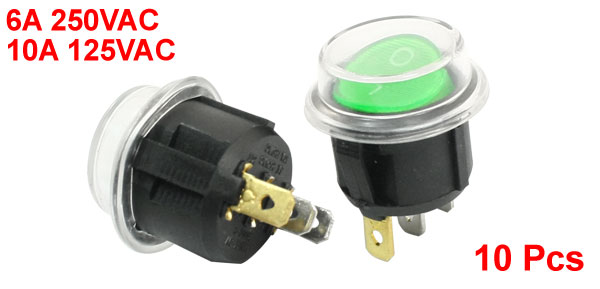 10Pcs Green Pilot Lamp 3 Pin Soldering SPST Waterproof Snap in Rocker Switches