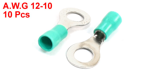10pcs Green PVC Insulating Sleeve Ring Terminals Cable Lug RV5.5-8 AWG 12-10