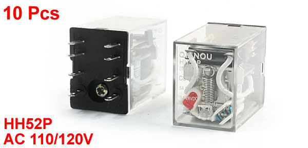 10pcs HH52P AC 110/120V Coil DPDT 2NO 2NC 8 Pin Electromagnetic Power Relay