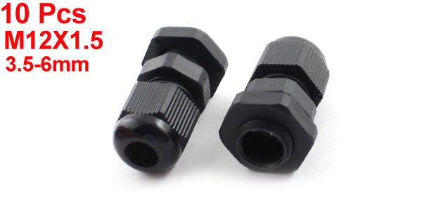 10Pcs M12x1.5 Black Plastic 3-6.5mm Waterproof Cable Glands Connectors