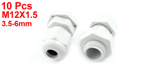 10Pcs M12x1.5 White Plastic 3-6.5mm Waterproof Cable Glands Connectors
