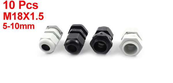 10Pcs M18x1.5 White+Black Nylon 5-10mm Waterproof Cable Glands Connectors
