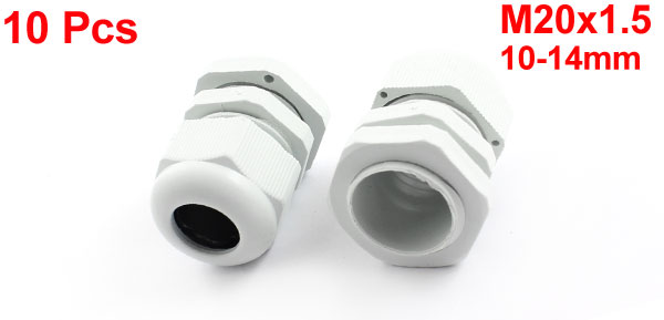 10Pcs M20x1.5 White Nylon 10-14mm Waterproof Cable Glands Connectors