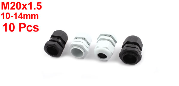 10Pcs M20x1.5 White+Black Nylon 10-14mm Waterproof Cable Glands Connectors