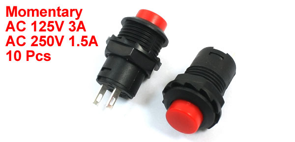 AC250V 1.5APin Number 2 Contact Type SPST Mounting Hole Diameter 12mm / 0.47" Soldering Distance 5.5mm / 0.22" Button Head Diameter 9mm / 0.35" Total Size 16 x 29mm / 0.63'' x 1.1''(Max.D*H) External Material Plastic Color Red,Black Net Weight 18g Package Content 10 x Push Button Switches - Reviews