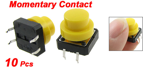 10pcs Momentary Tact Push Button Switch 12 x 12mm x 12mm 4 Pin DIP w Yellow Cap