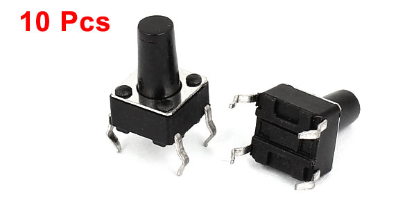 Details10pcs Momentary Tactile Tact Push Button Switch 6x6x9.5mm DIP Through-Hole 4 Pin  Main Color Black, Silver Tone Product Name Tactile Switch Brand DMiotech Net Weight 6g Country of Manufacture CHINA Package Content 10 x Tactile Switches Switch Size 6x6x9.5mm Material Plastic, Metal, Electric Parts