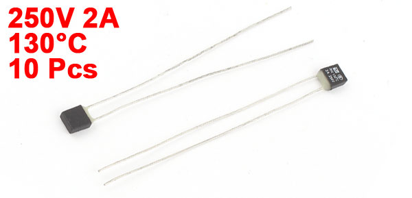 Product Name Thermal Fuse Type RH Function Temperature 130C Rated Voltage 250V Rated Current 2A Body Size 5.5 x 5.3 x 2.4mm/0.22" x 0.21" x 0.09"(L*W*T) Lead Size 0.5 x 65mm / 0.02" x 2.6"(D*L) Lead Pitch 3.5mm/0.14" Material Plastic, Metal Main Color Black, Silver Tone Net Weight 4g Package Content 10 Pcs x Thermal Fuses - Reviews