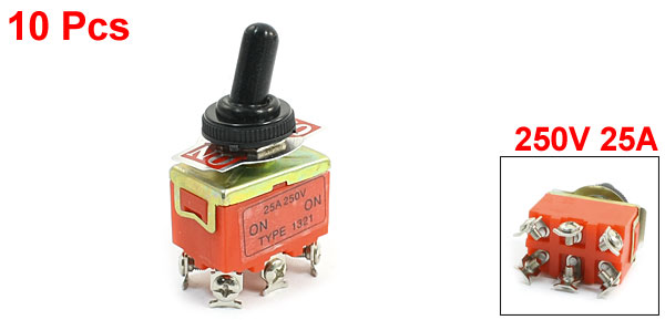 Product Name Toggle Switch w Cover Type DPDT (ON/ON) Position 2 Terminal Number 6 Voltage & Current 250V 25A
