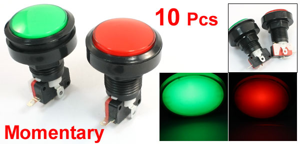 10Pcs Panel Mount Red Green Lamp Round Head SPST 4P Momentary Game Button Switch