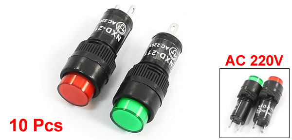10Pcs Panel Mounted 220VAC Red Green Indicator Light Pilot Signal Lamp