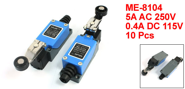 Product Name Limit Switch Model No. ME-8104 Contact Configuration 1NO, 1NC Actuator Action Momentary Actuator Type Side Rotary Plastic Roller Lever Terminal Type Screw Terminals Voltage (Max) & Current 5A AC 250V