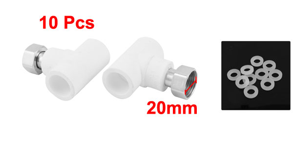 Product Name Water Pipe Tee Connector Female Thread Dia (Approx.) 1/2 PT (20mm) Tube Inner Dia 20mm/0.8" Overall Size (Approx.) 53 x 55mm /2.1" x 2.2"(L*W) Material PPR, Metal Color White Weight 340g Package Content 10 x Water Pipe Tee Connector - Reviews