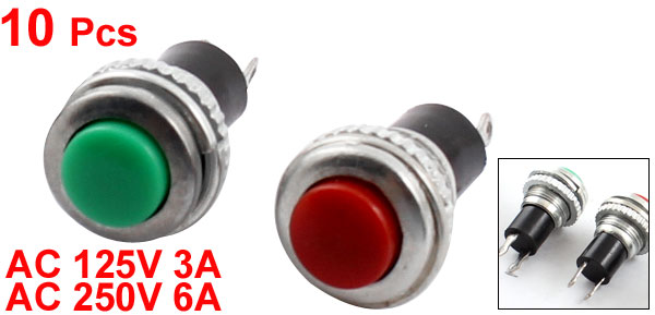 10pcs Red Green SPST Panel Momentary Metal Pushbutton Switch AC125V 3A 250V 6A