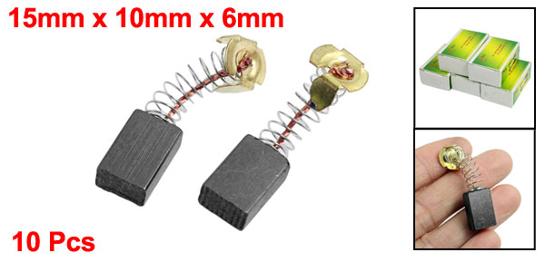 Product Name Carbon Brush Carbon Brush Size 15 x 10 x 6mm/ 19/32" x 3/8" x 1/4"(L*W*T) Total Length(Approx) 35mm/ 1.38" Main Material Carbon, Metal Color Dark Gray, Gold Tone Net Weight 43g Package Content 10 Pcs x Carbon Brush - Reviews