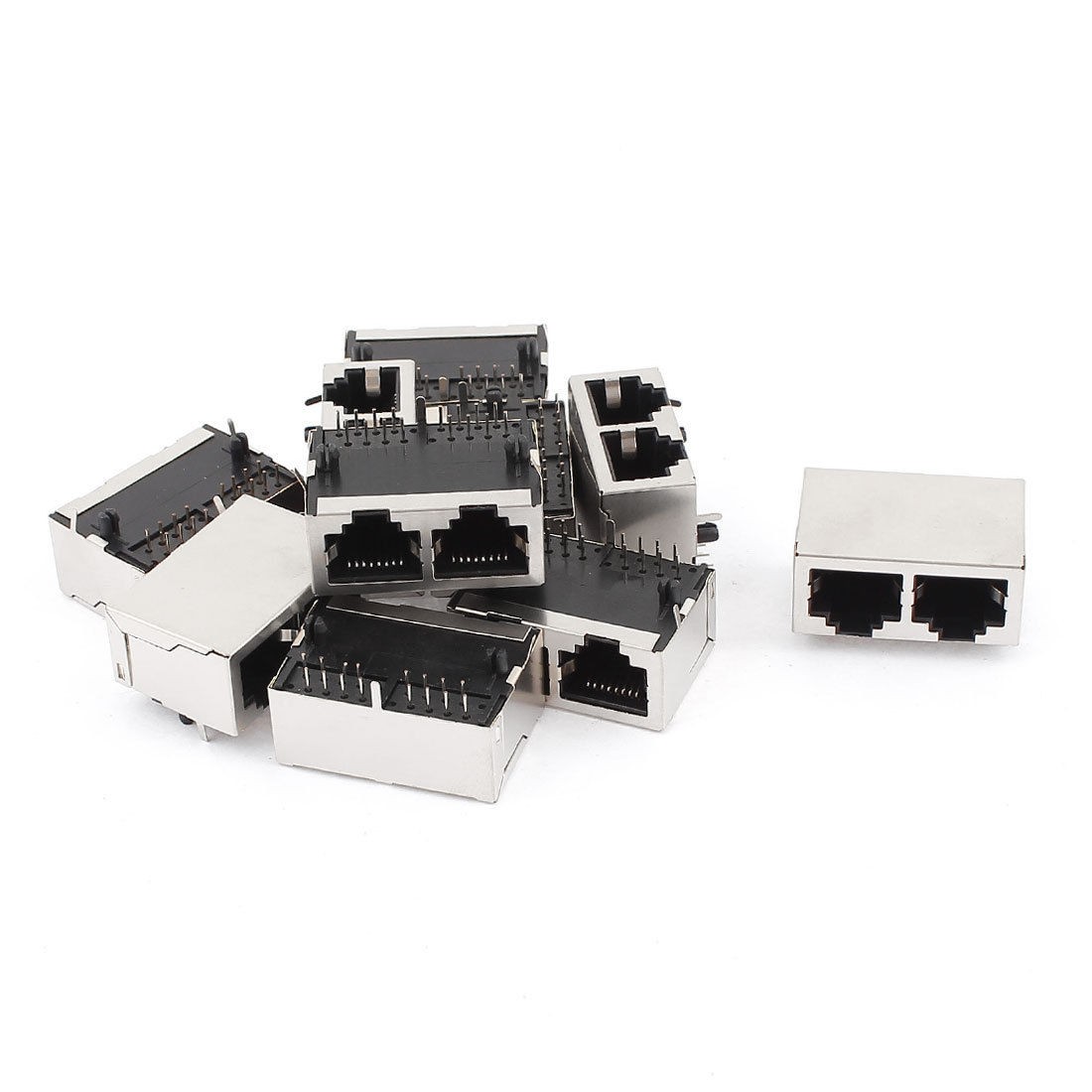 10pcs Shielded RJ45 8P8C 2-Ports Network Modular Connector Silver Tone