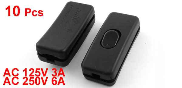 10PCS Single Pole ON OFF Control In Line Cord Switches Black AC125V 3A 250V 6A