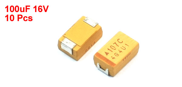 Product Name Chip Tantalum Capacitor Rated Voltage 16V Capacity 100uF Type 7343 D Type Each Size(Approx.) 7.3 x 4.3 x 3mm/ 0.29" x 0.17" x 0.12"(L*W*T) External Material Tantalum, Metal Weight 4g Package Content 10 Pcs x Chip Tantalum Capacitor - Reviews