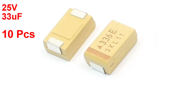 Product Name Chip Tantalum Capacitor Rated Voltage 25V Capacity 33uF Type 7343 D Type Each Size(Approx.) 7.3 x 4.3 x 3mm/ 0.29" x 0.17" x 0.12"(L*W*T) External Material Tantalum, Metal Weight 3g Package Content 10 Pcs x Chip Tantalum Capacitor - Reviews