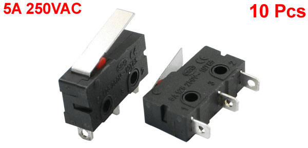 Product Name Micro Switch Model No. KW12 Actuator Type Straight Hinge Lever Rating 5A 250VAC Contact Type SPDT, NO NC Hinge Lever Size 20 x 4mm/0.8" x 0.16"(L*W) Fixing Holes Dia. 0.25cm / 0.1“ Total Size 2.3 x 1.8 x 0.6cm/0.9" x 0.7"x 0.24"(L*W*T) Material Plastic & Metal Color Green Net Weight 21g Package Content 10 Pcs x Micro Switch - Reviews