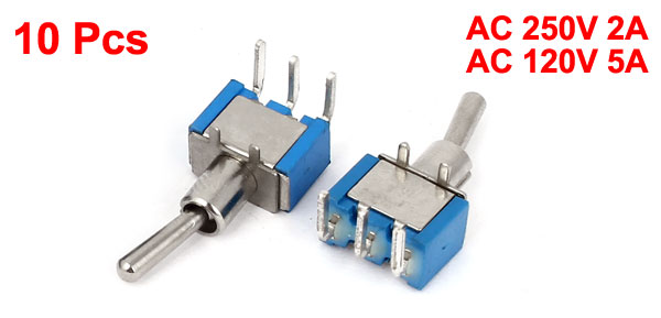 Main Color Blue, Silver Tone Brand DMiotech Country of Manufacture CHINA Action Type Latching Total Height 31mm / 1.2" Type SPDT Material Plastic, Metal Body Size (Approx.) 13 x 7 x 10mm / 0.51" x 0.28" x 0.4" (L*W*T) Product Name Toggle Switch Net Weight 39g Rated Voltage AC 250V 2A AC 120V 5A Package Content 10 x Toggle Switch Position 2 Positions (ON/ON) Pin Number 3 Pins - Reviews