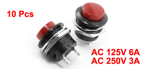 10Pcs SPST 2 Terminals Momentary Push Button Switches AC 250V 3A Red