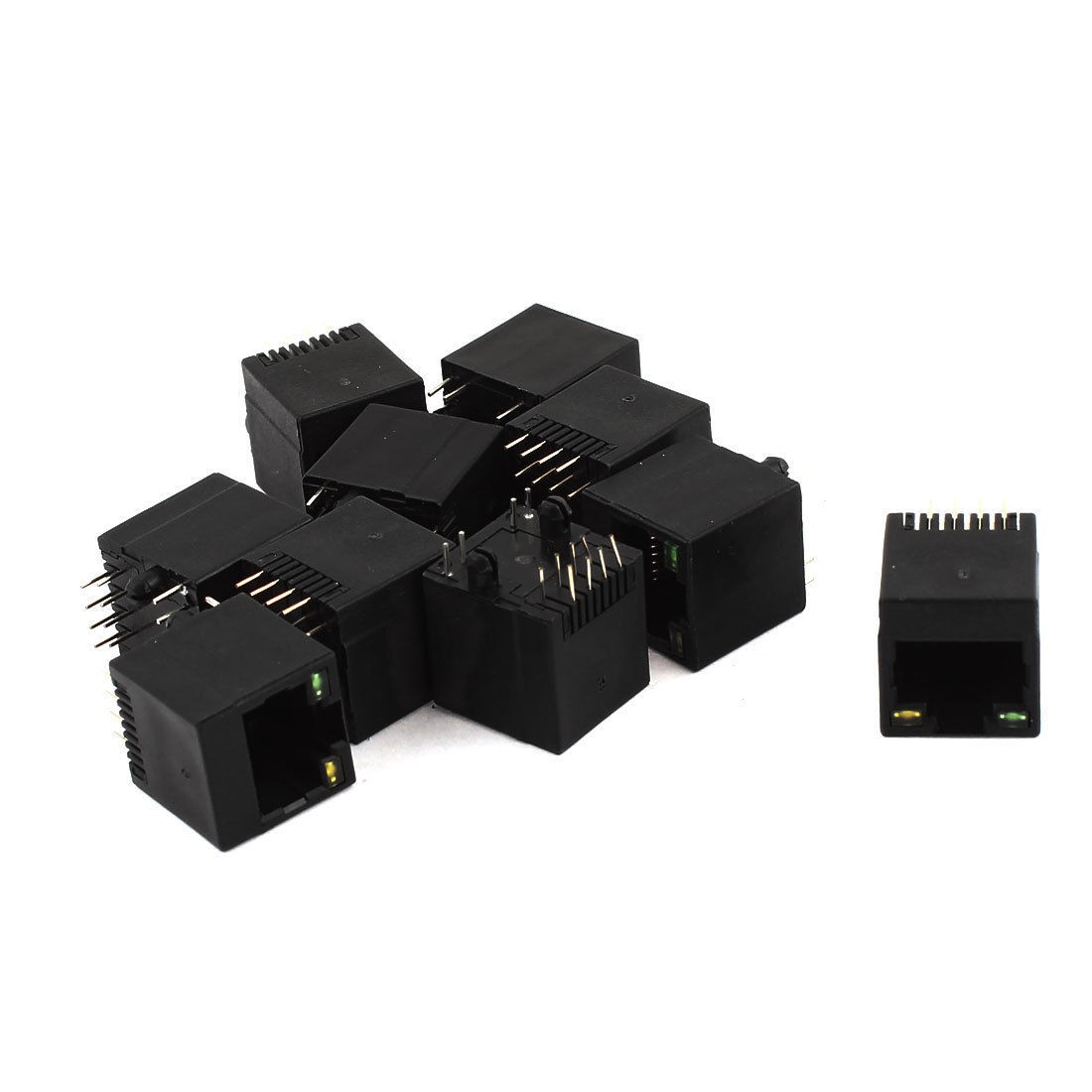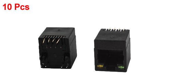 10pcs Unshielded RJ45 8P8C Plastic Network Modular Connector Black w LED