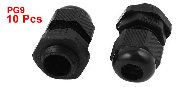 Product Name Cable Gland Model PG9 Cable Range 4-8mm/ 0.31"-0.31" Thread OD 15.2mm/ 0.6" Thread Length 8mm / 0.31" Total Size 33 x 22mm / 1.3" x 0.87" (L*Max.D) Material Plastic Color Black Total Weight 62g Package Content 10Pcs x Cable Glands - Reviews
