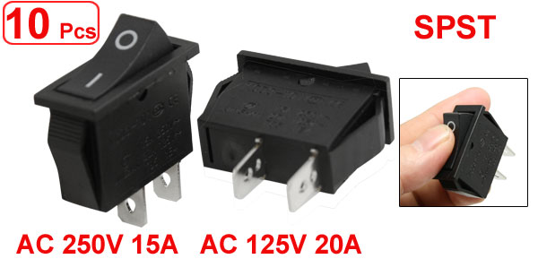 Product Name Rocker Switch Poles SPST Terminals 2 Pin (On-Off) Rating Voltage AC 250V 15A AC 125V 20A Total Size(Each One) 3 x 1.4 x 3.8cm/ 1.2" x 0.55" x 1.5"(L*W*T) Mounting Size 2.6 x 1 x 3cm/ 1" x 0.4" x 1.2"(L*W*T) Color Black Material Plastic, Metal Total Weight 63g Package Content 10 x Rocker Switch - Reviews