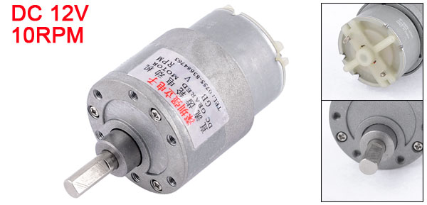 Product Name DC Geared Motor Rated Voltage DC 12V Output Speed 10RPM Shaft Diameter 6mm/ 0.24" Gearbox Part Size 37 x 29mm/ 1.5" x 1.2"(D*L) Motor Part Size 30 x 15mm/ 1.2" x 0.6"(D*L) Total Length(Approx) 70mm/ 2.8" Material Metal, Electronic Parts Color As Picture Shown Weight 184g Package Content 1 x DC Geared Motor - Reviews