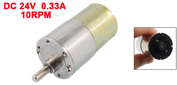 Product Name DC Geared Motor Rated Voltage DC 24V Rated Current 0.33A Output Speed 10RPM Rated Torque 14Kg.cm Shaft Diameter 5mm/ 0.2" Gearbox Part Diameter 37mm/ 1.45" Motor Part Diameter 35mm/ 1.37" Total Length(Approx.) 81mm/ 3.2" Material Metal, Electronic Parts Color As Picture Shown Weight 198g Package Content 1 x DC Geared Motor - Reviews